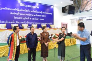 ໃນວັນທີ 4 ກໍລະກົດ 2025 ທີ່ ສວນບັນດາເຜົ່າ ບ້ານ ດານຊີ, ເມືອງນາຊາຍທອງ, ນະຄອນຫຼວງວຽງຈັນ. ທ່ານ ນາງ ຈັນທະຈອນ ວົງໄຊ ຮອງປະທານ ສະພາການຄ້າ ແລະ ອຸດສາຫະກຳ ແຫ່ງຊາດລາວ